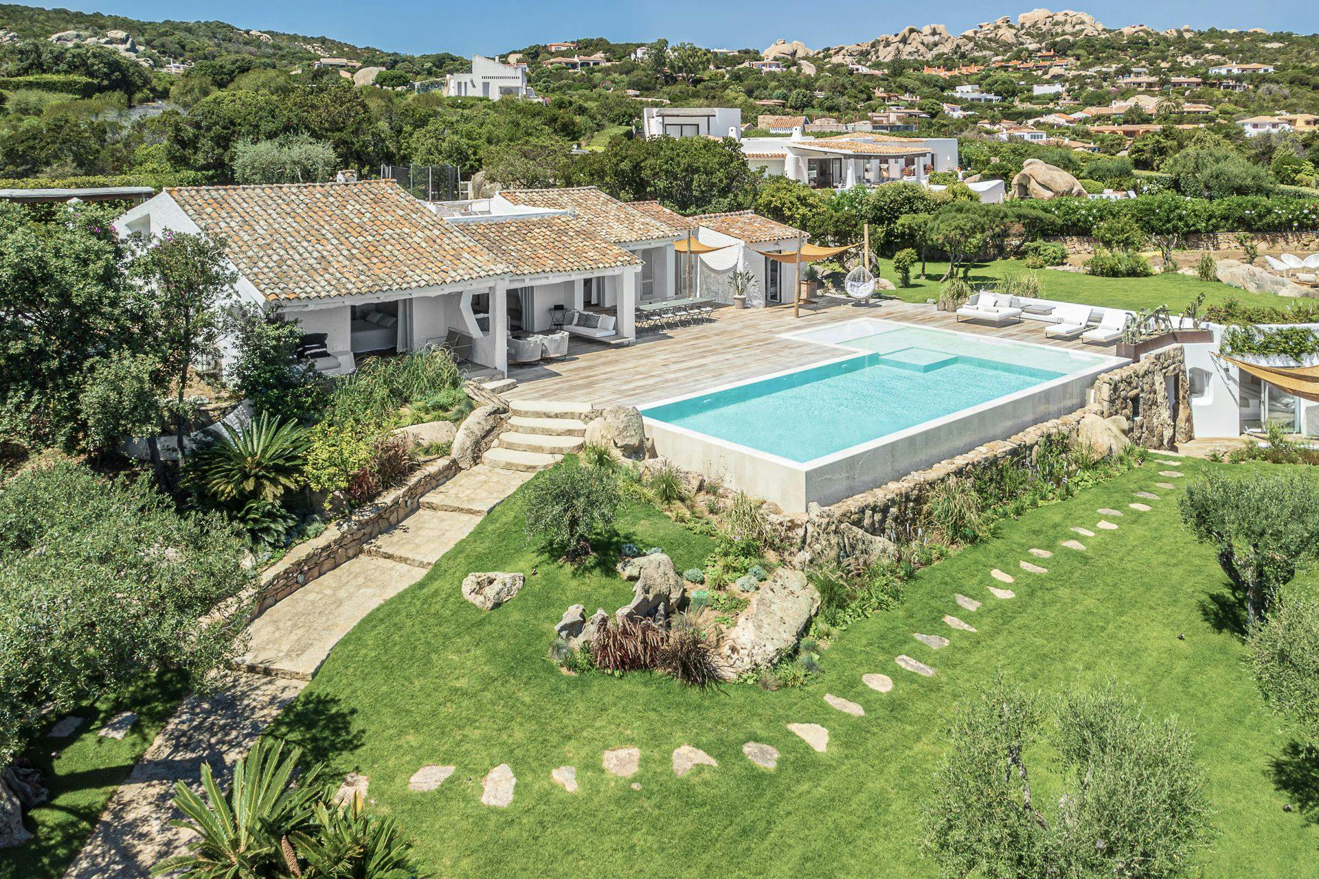 Sie beeindruckt mit ihrem wunderschönen Infinity-Pool, Außendusche, weitläufigen Terrassen und Essbereichen im Freien, sowie üppigem Garten mit Granitfelsformationen und Olivenbäumen- und das mit tollem Blick über das Meer und die Maddalenainseln.